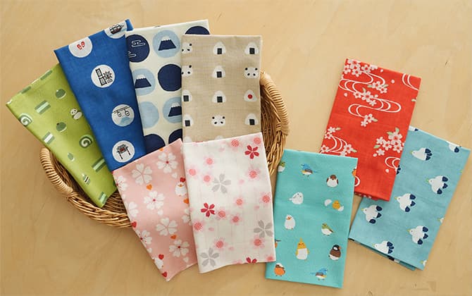 横浜伝統の型染め手法である「捺染(なっせん)」で染め上げた色鮮やかなてぬぐいを中心に、数多くの和雑貨を製造、販売しています。